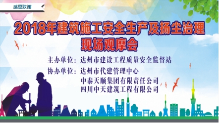 2018年7月13日上午,達(dá)州市2018年建筑施工安全生產(chǎn)及揚(yáng)塵治理現(xiàn)場(chǎng)觀摩會(huì)在四川中天建筑工程有限公司承建的“達(dá)州政務(wù)服務(wù)綜合大樓”施工現(xiàn)場(chǎng)召開(kāi),相關(guān)施工項(xiàng)目建設(shè)、管理、施工單位負(fù)責(zé)人及安全、揚(yáng)塵管理人員和該項(xiàng)目現(xiàn)場(chǎng)施工人員共266人參加會(huì)議。